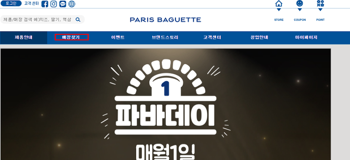 그래서 이런 분들을 위해 오늘은 파리바게트 오픈시간이 어떤 식으로 되는지, 어떻게 알 수 있는지 보도록 하겠습니다. 먼저 이를 위해서는 본인이 자주 가는 곳의 매장명을 정확히 알아야겠죠? 이는 홈페이지 내에서 확인을 할 수 있습니다.