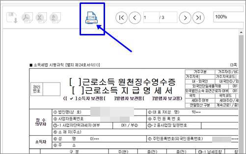 근로소득 원천징수영수증 세무서 발급