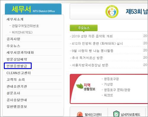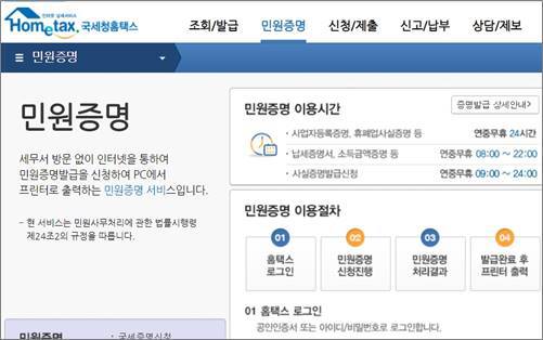 국세청 홈택스로 접속해서 민원증명발급 메뉴로 들어갑니다.