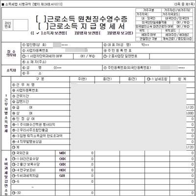 '근로소득 원천징수영수증 세무서 발급' 카테고리의 다른 글
