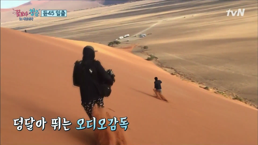 박보검을 픽업한 꽃보다 청춘 아프리카 일행은 곧장 오프로드를 달려 소서스블레이로 향했다. 중간에 침낭과 텐트 빌리고~ 태양의 고도에 따라 색이 변하는 꽃보다청춘 아프리카 나미비아의 사막 소 서스 블레이.