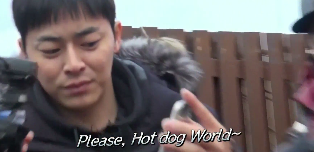 please, hotdog world~라고 번역한다.