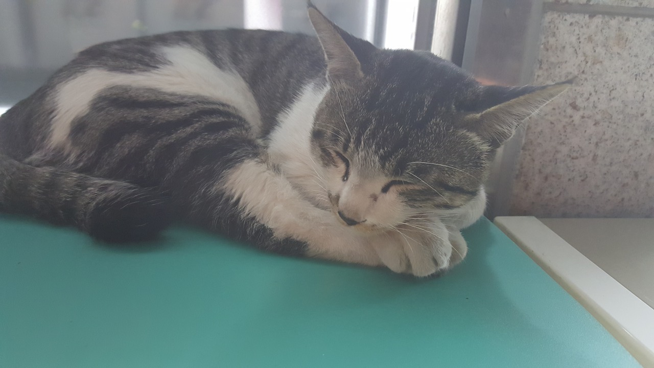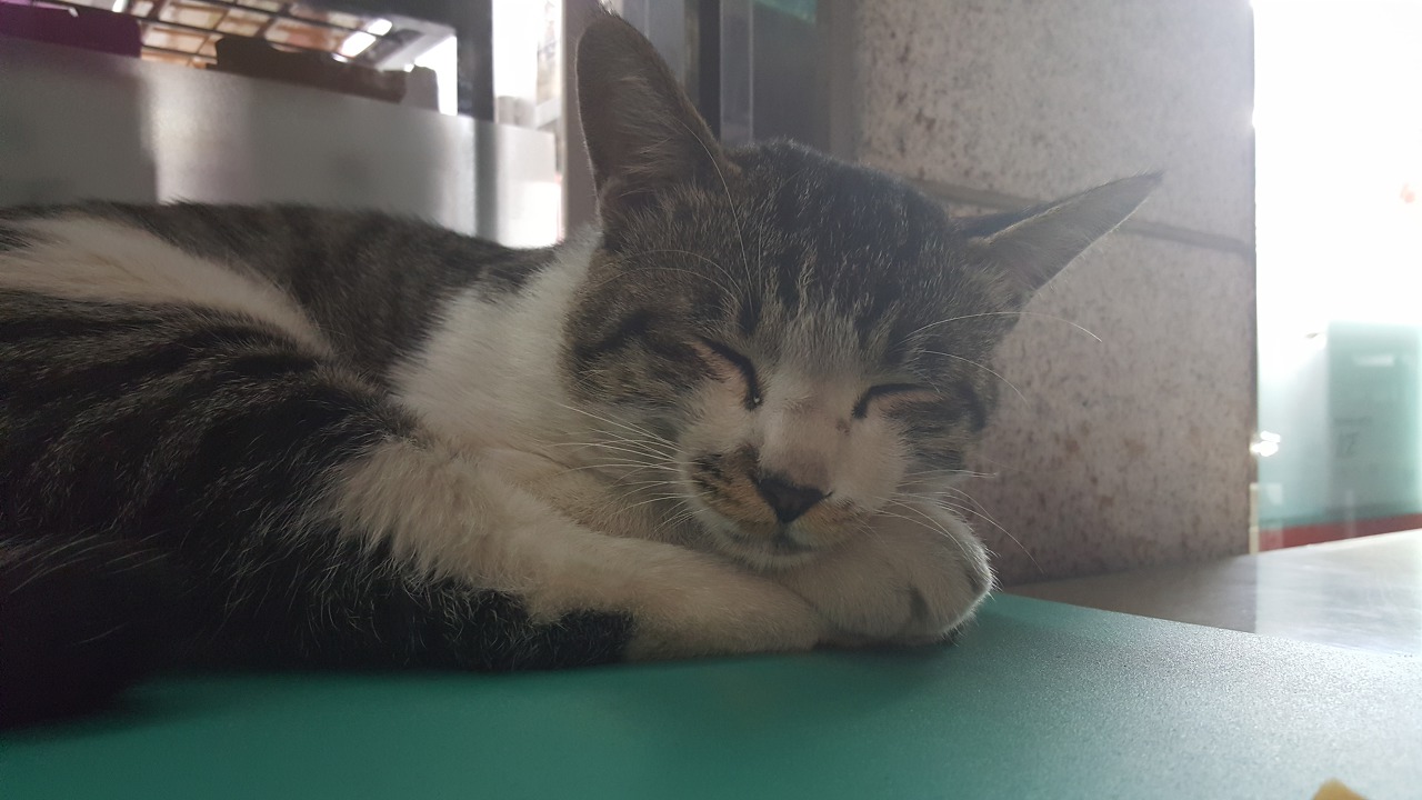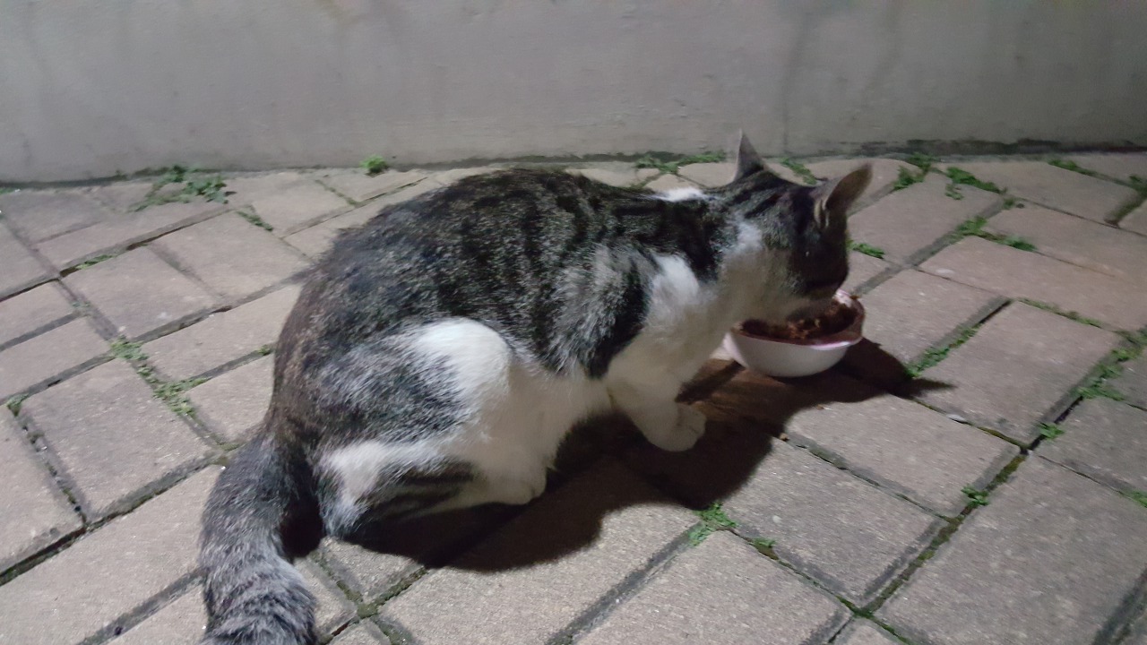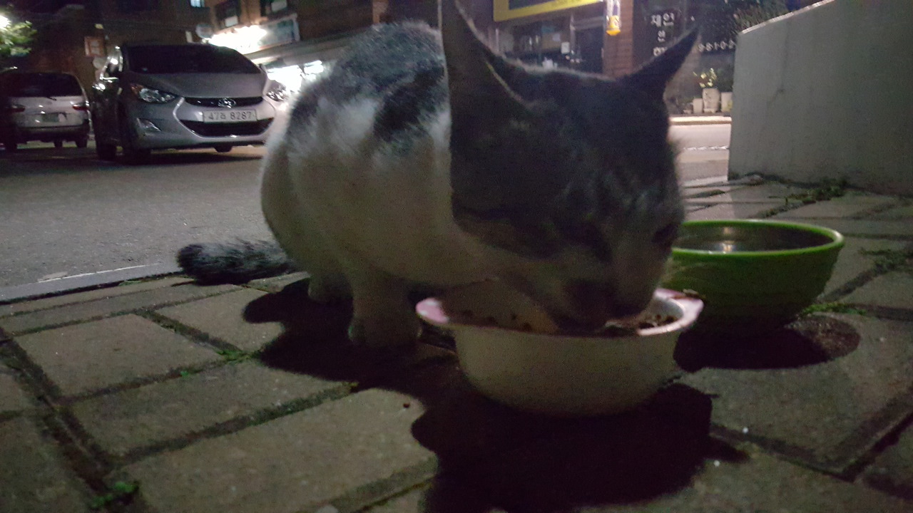 허겁지겁 먹으면서 사진을 찍게 허락해주는 길냥이.