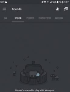아직 그 어떤 채팅에 참여도 서버에 가입 혹은 생성도 하지 않은 상태라서 위와 같이 보입니다.