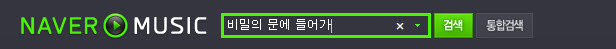 이 곳에 기억해 둔 노래 가사를 입력합니다. 예를 들어, "비밀의 문에 들어가"라는 가사를 기억하고 있다면 해당 가사를 검색창에 입력합니다.