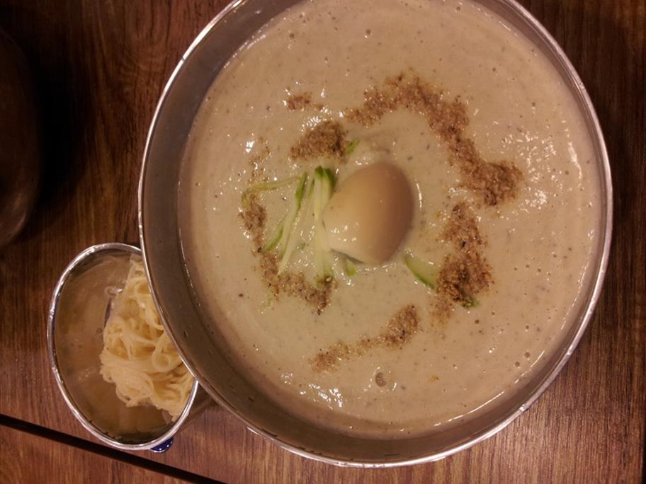 와우~ 콩국이 아니라 콩 범벅 일정도로 정말 콩만 갈아 넣은 듯 국물이 아주 진하다 못해 잘하면 반죽도 할 수 있을 정도더군요.