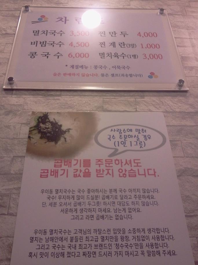 일전에 소개했던 동촌 문정점의 맞은편에 몇 달 전에 "우이동 멸치 국수"집이 생겼어요.