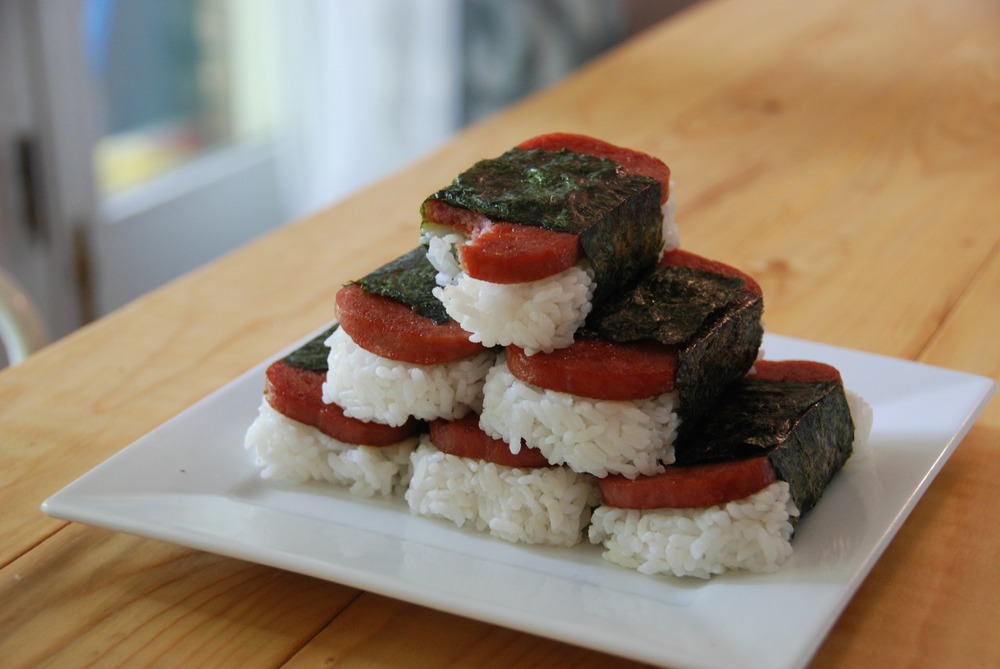 일본의 초밥 + 주먹밥에 착안해서 스팸으로 초밥으로 만들어진 무수비...