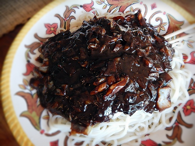 - 삶은 면을 그릇에 담고 준비된 짜장 소스를 넉넉히 얹어줍니다.