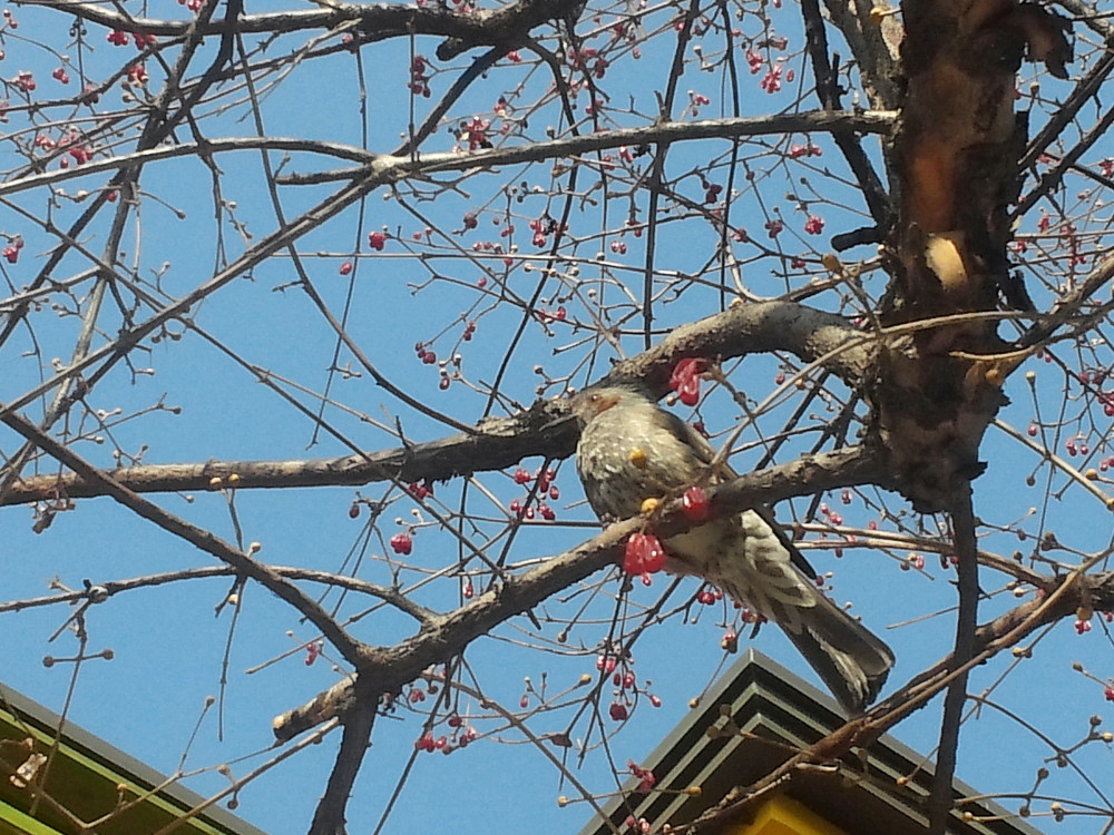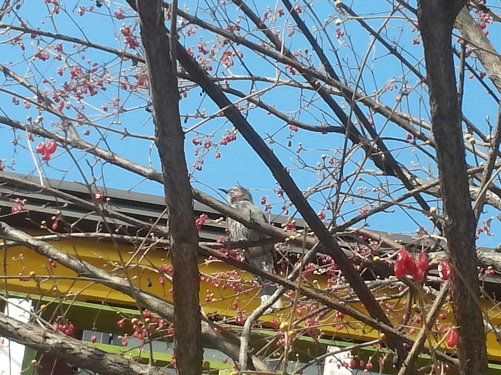 - 회사 사무실 앞 주차장 옆에 산수유 나무가 한 그루 있는데요. 겨울이 지나도록 산수유 열매를 따지 않으니까, 동네의 직박구리들이 집으로 삼고 항상 상주중이네요.