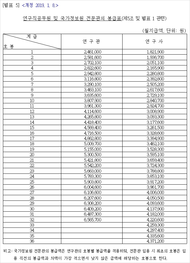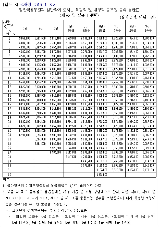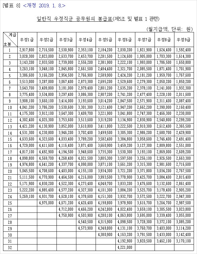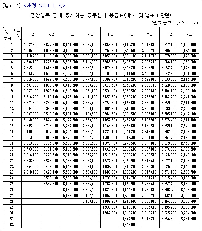 2. 2019년 공무원 봉급표