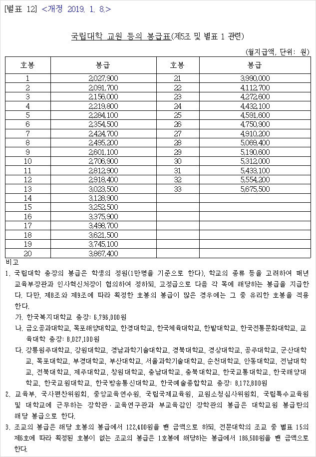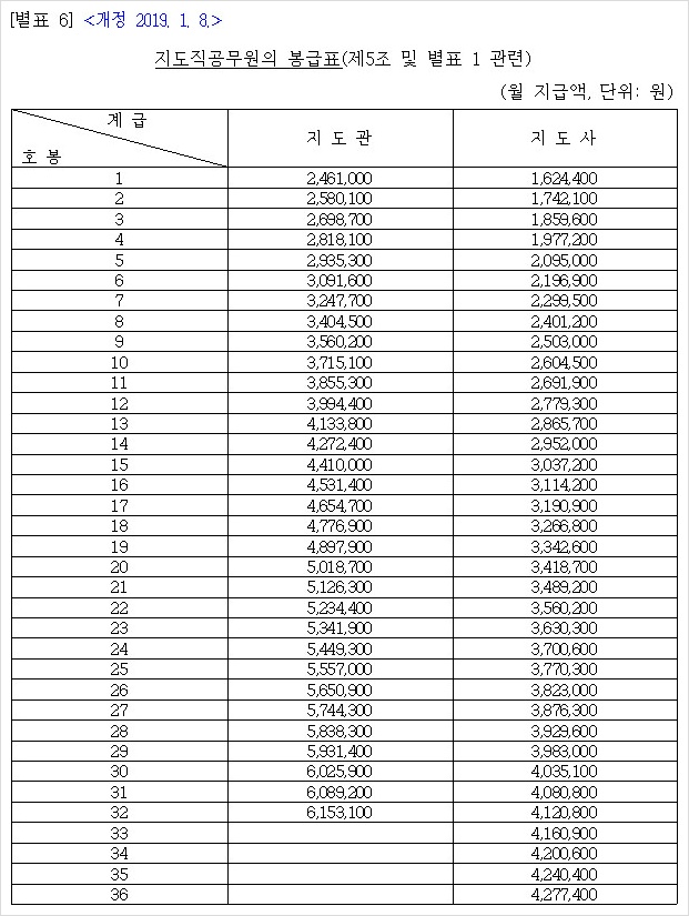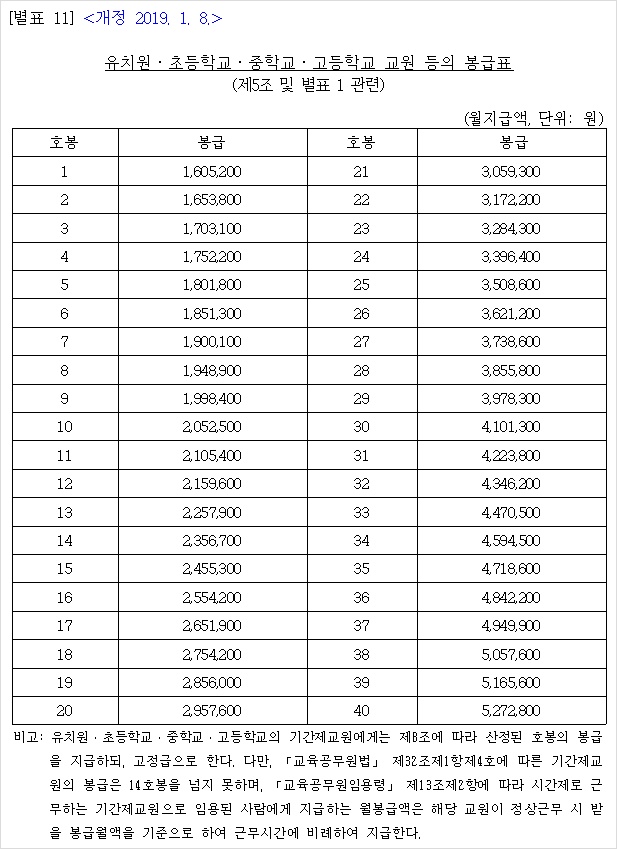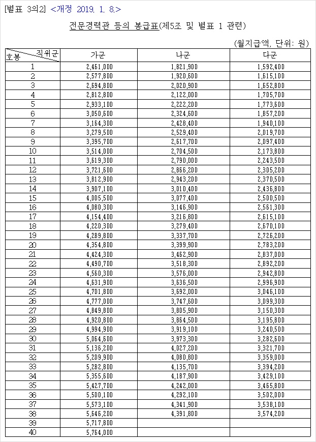 2019년 공무원 봉급표 2019 군인 월급 19년 교사 호봉표