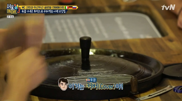 화덕에서 초벌구이 한 후, 솥뚜껑으로 고기를 구워 먹는 수 있는 고깃집.